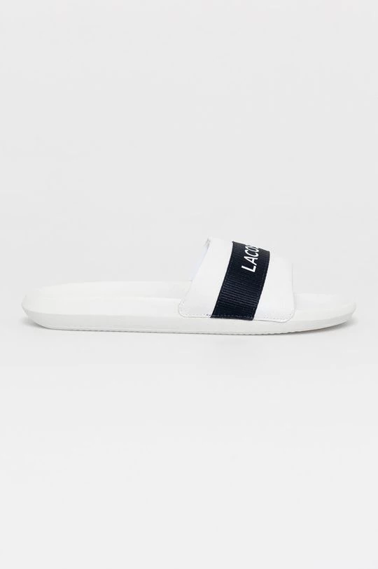 Παντόφλες από τη συλλογή Lacoste. Μοντέλο από συνδυασμό οικολογικού δέρματος και υφασμένου υφάσματος.